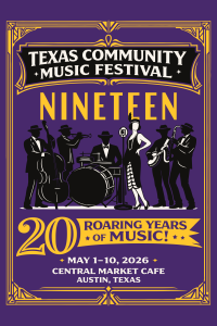 Our theme for Texas Community Music Festival #19 – the twentieth year – is 19/20! 1920. Get it?Anyway, here’s to the Roaring 20s, and all that jazz!